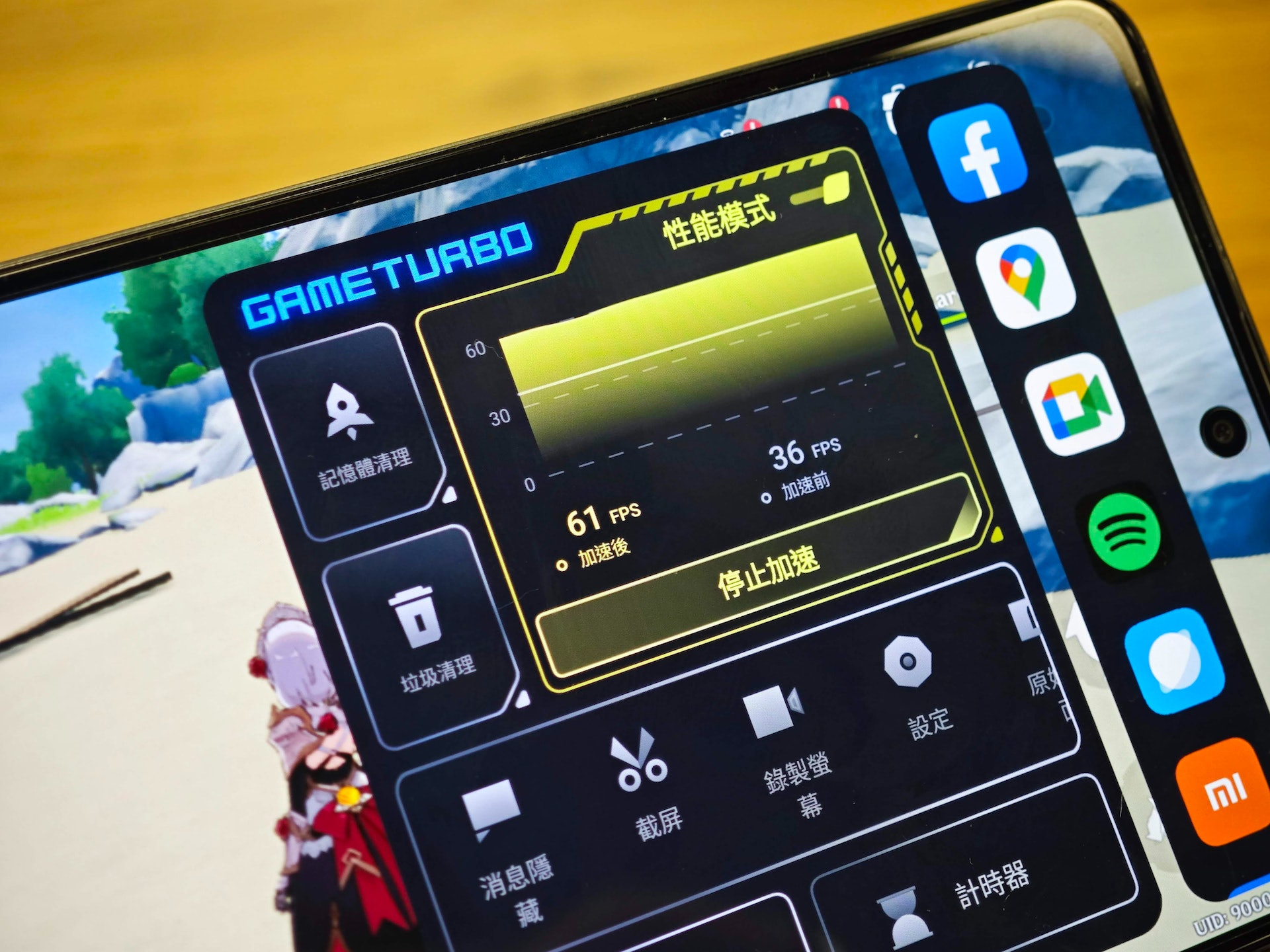 Redmi Note 12 Pro 的處理晶片為 MediaTek Dimensity 1080,是一枚市場上仍屬罕見的中高階晶片,效能方面貼近年前的 Qualcomm Snapdragon 870,可以處理絕大部份的日常任務,亦能提供不俗的遊戲性能,我們在 Redmi Note 12 Pro 上就以高配置運行《原神》,透過內置的 Game Turbo 打開「性能模式」,可以長時間保持運行幀率在 60fps 附近,算是令人相當驚喜。
